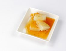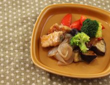 素揚げしたナスを甘酢に漬け込みました。相性の良いなすと油を、甘酢でさっぱりと仕上げています。揚げ物ながら、お酢を使っているので脂っこさを感じない一品です。
