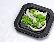 枝豆と玉ねぎスライスをマヨネーズで和えたさっぱりとした一品です。マヨネーズのコクとこしょうの辛みをアクセントに仕上げました。簡単なので作り置きしておくと便利ですね。