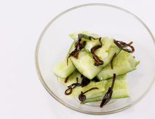 きゅうりを塩昆布とごま油で和え、風味豊かに仕上げた副菜です。