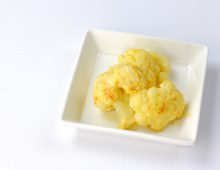 カリフラワーをマヨネーズで炒め、カレー風味で仕上げました。塩分の少ないマヨネーズを使用することでカロリーを上げ、カレー粉を使うことで塩分制限且つしっかりとした味付けにすることが出来ます。カリフラワーは茹でてカリウムを控えましょう。