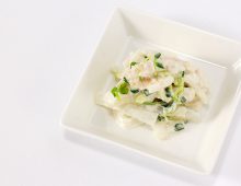 マヨネーズは塩分控えめでエネルギーが確保できる調味料のため、腎臓病食の強い味方!大根はしっかりと水気を切ってから和えるのがポイントです。